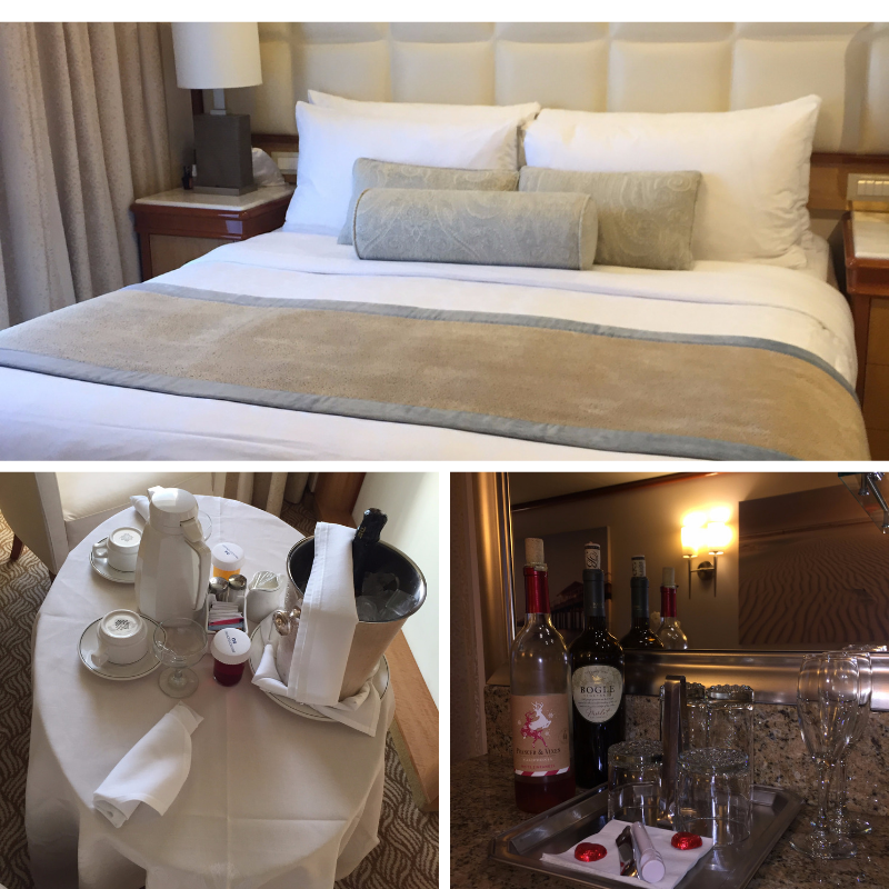 Part of the beauty of cruising for us is that there is something for everyone. Our younger daughter loves to sleep in so we can either drink our coffee on the balcony or slip out so as not to disturb her. I love breakfast-I can go for a sit down mimosa breakfast daily. We all love to work out but we’re on different schedules so we go when we want. Eating lunch together is not a priority but the buffet is available when we are and most days we could also choose one of the dining rooms. During the day we always make time for the thermal suite to relax and unwind. Trivia, game shows, reading, pool time and napping are other favorite activities on Caribbean cruises. We prefer traditional seating and make it a point to eat dinner together every night to catch up, enjoy a fantastic meal and reconnect. We enjoy having the same waiters every night as it makes for a more enjoyable dining experience since they get tuned in quickly to our preferences and we get to know them. At night we can either see the headline show, catch a movie, spend a little time in the casino or listen to live music. Or we can do nothing at all.