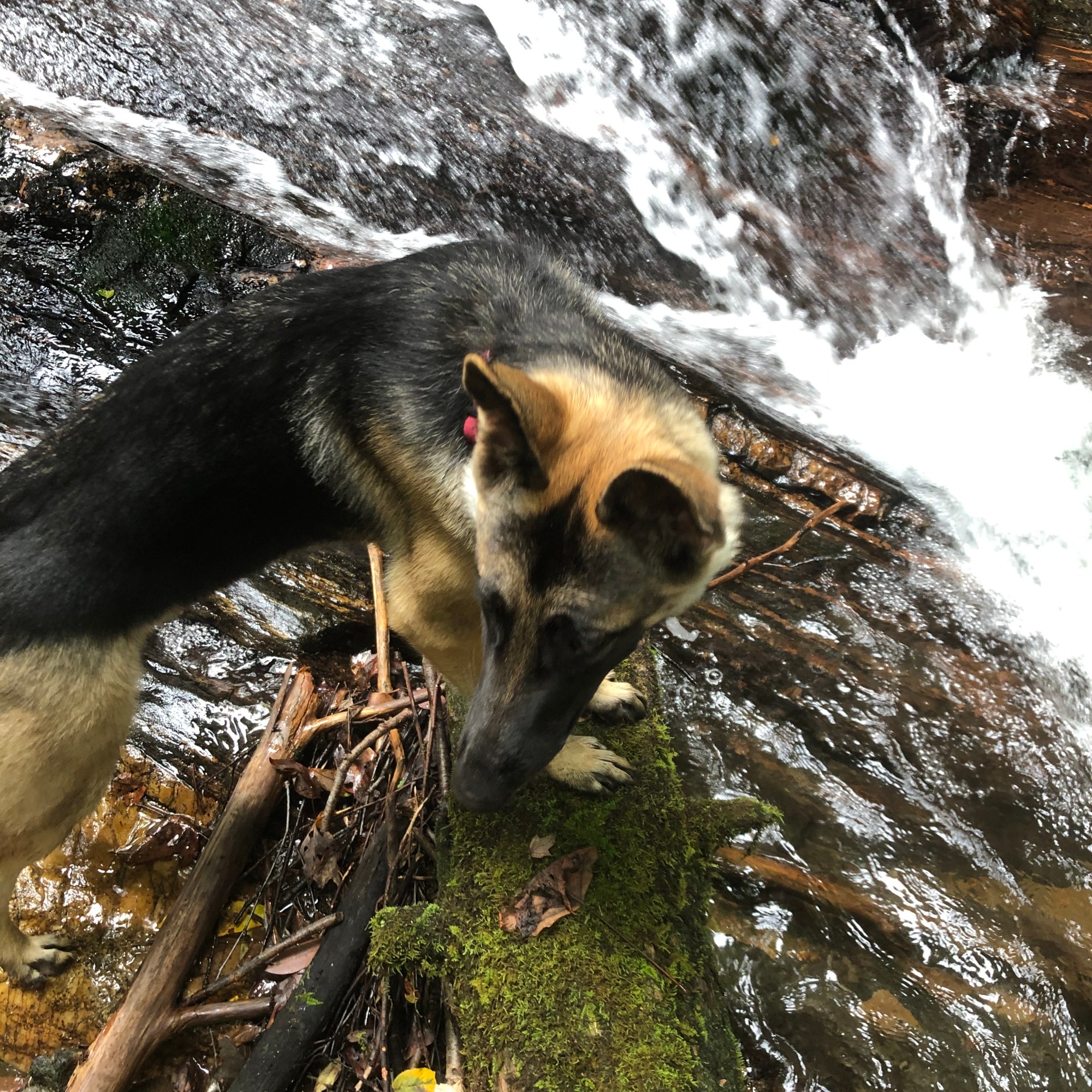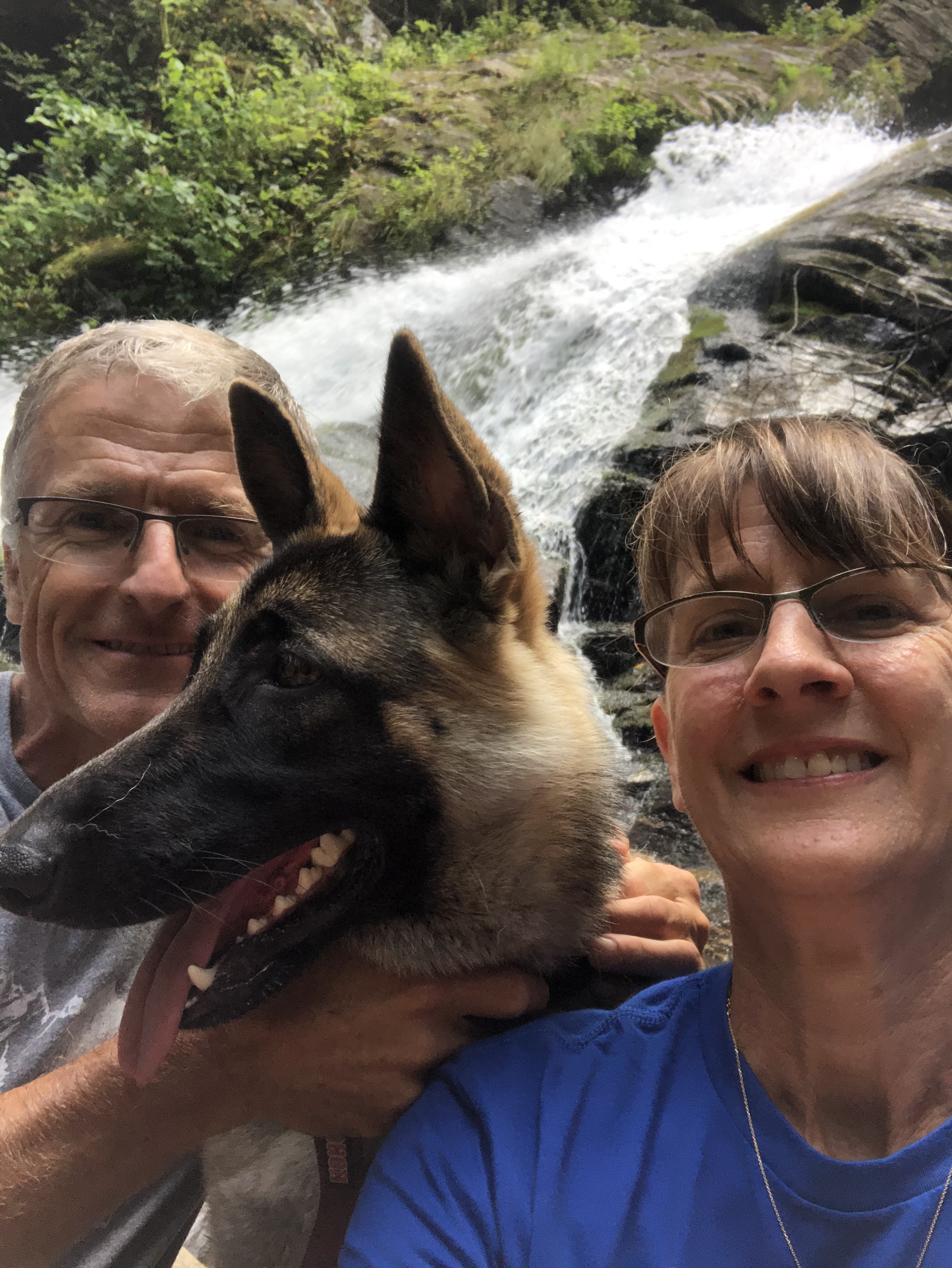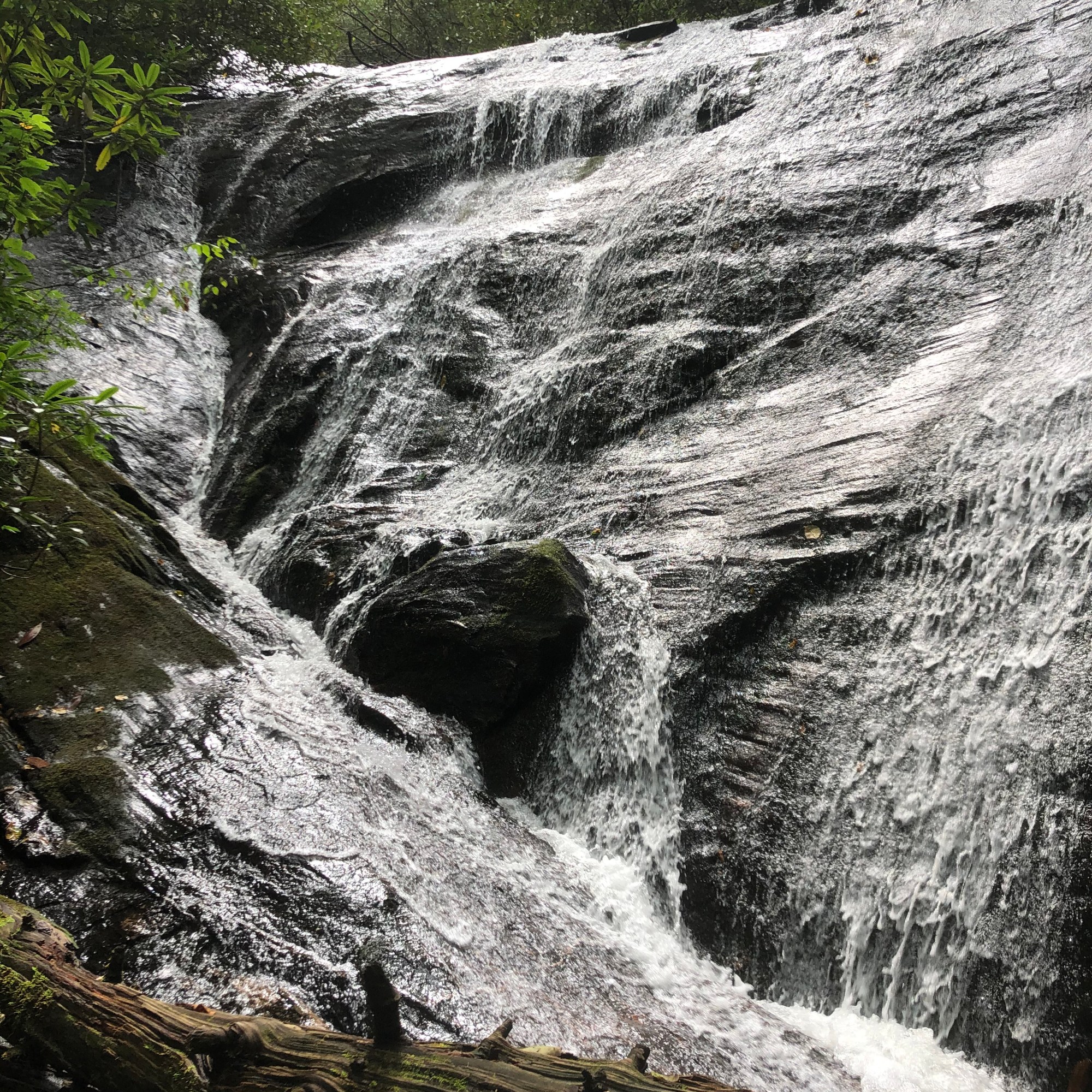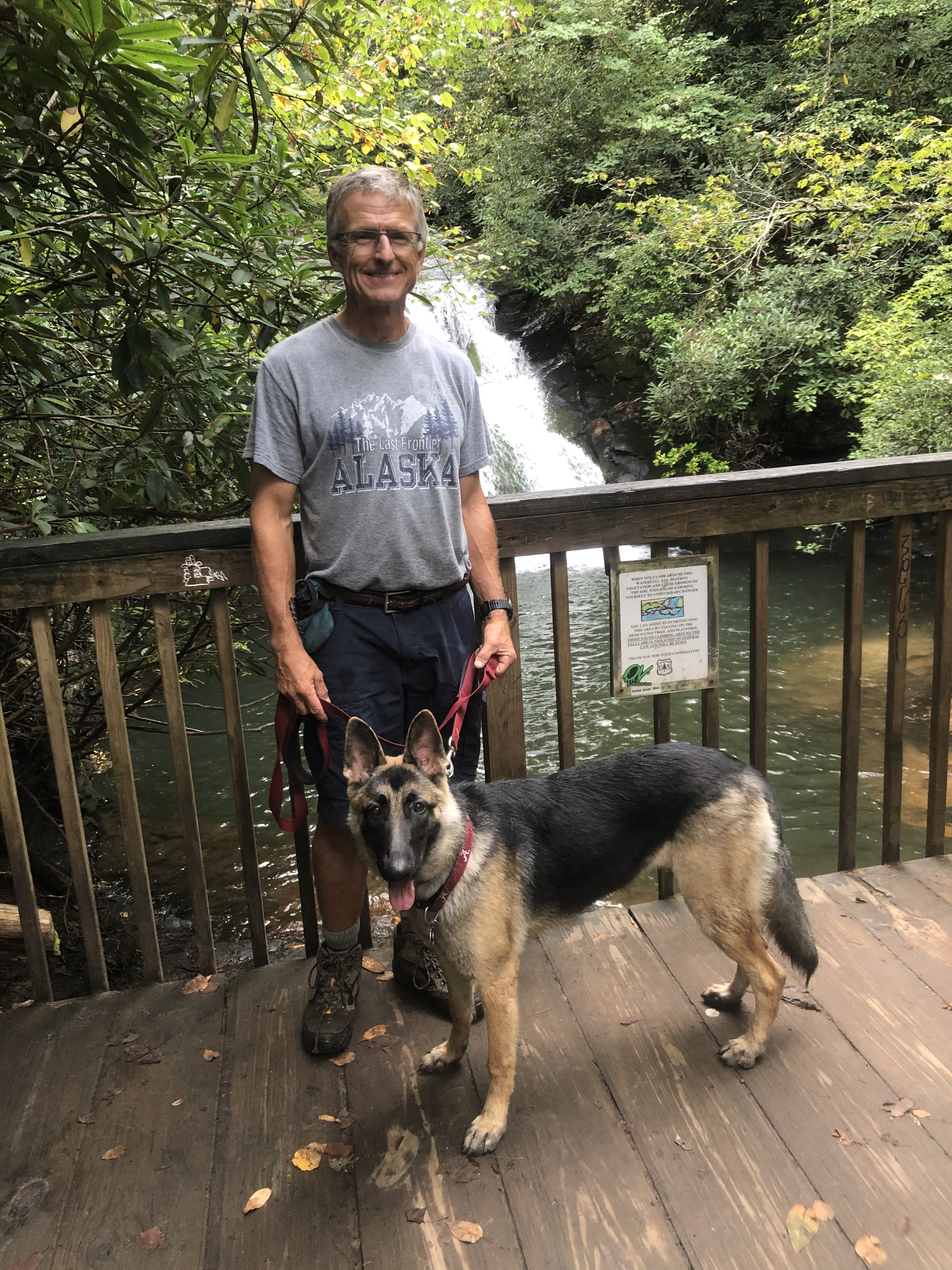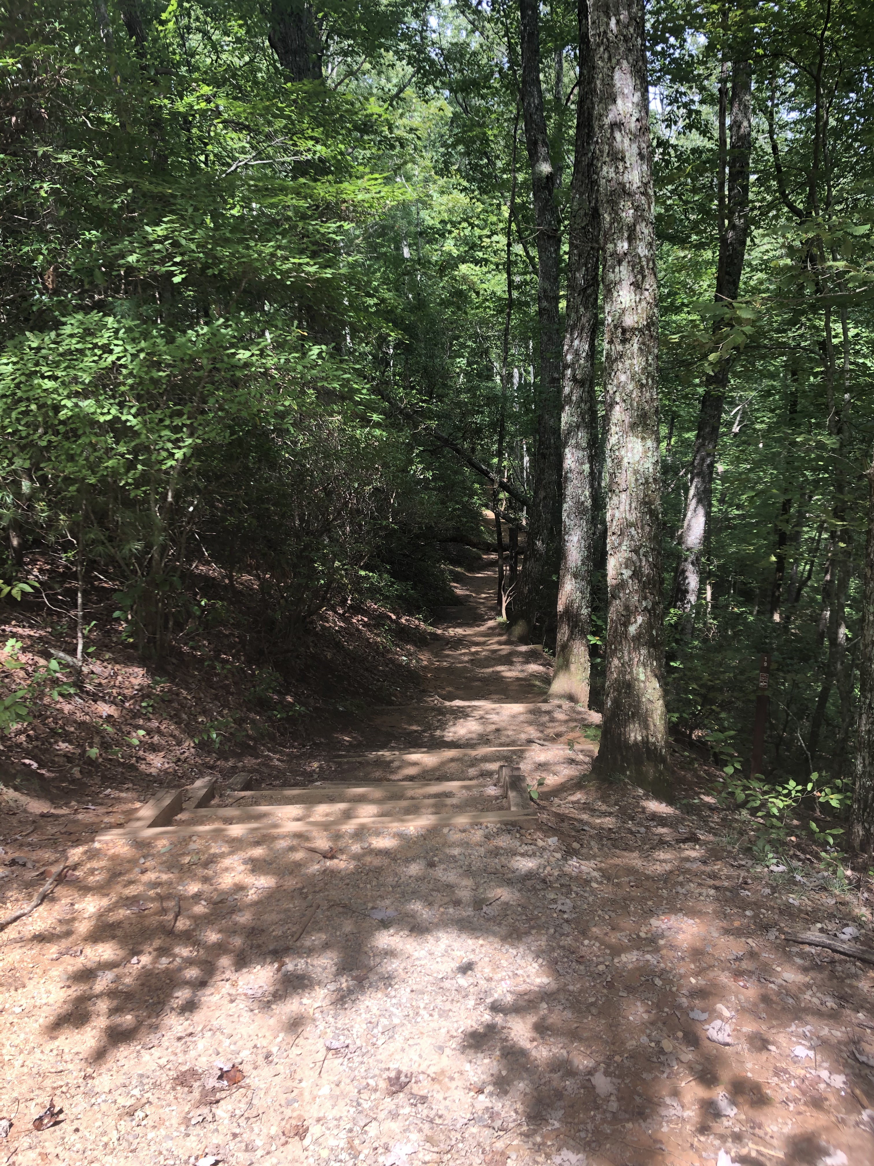 High Shoals Falls is created by five successive waterfalls equaling a total 300 ft drop along a 1.2 mile trail with observation decks for two of the falls. There is no charge for entry or parking. To get to the parking area for the trail you will travel 1.5 miles on a dirt road. This trail, along with all the others we visited, is dog friendly.