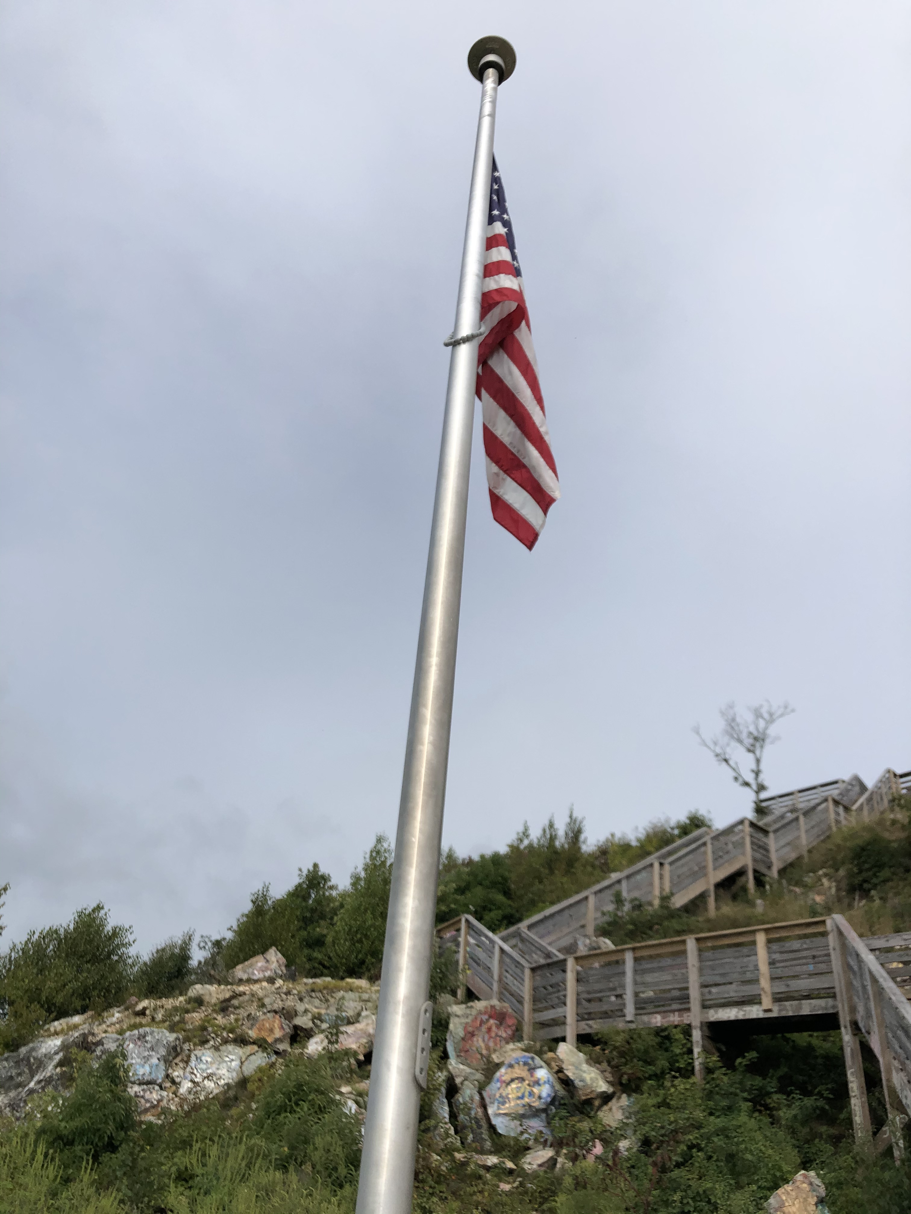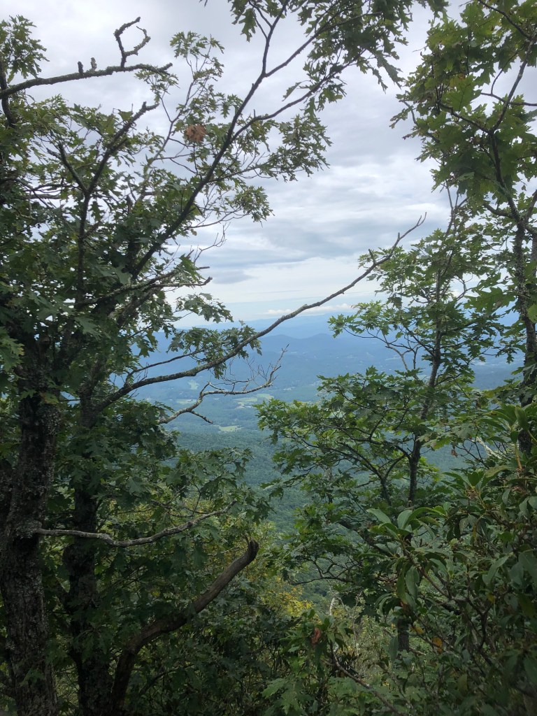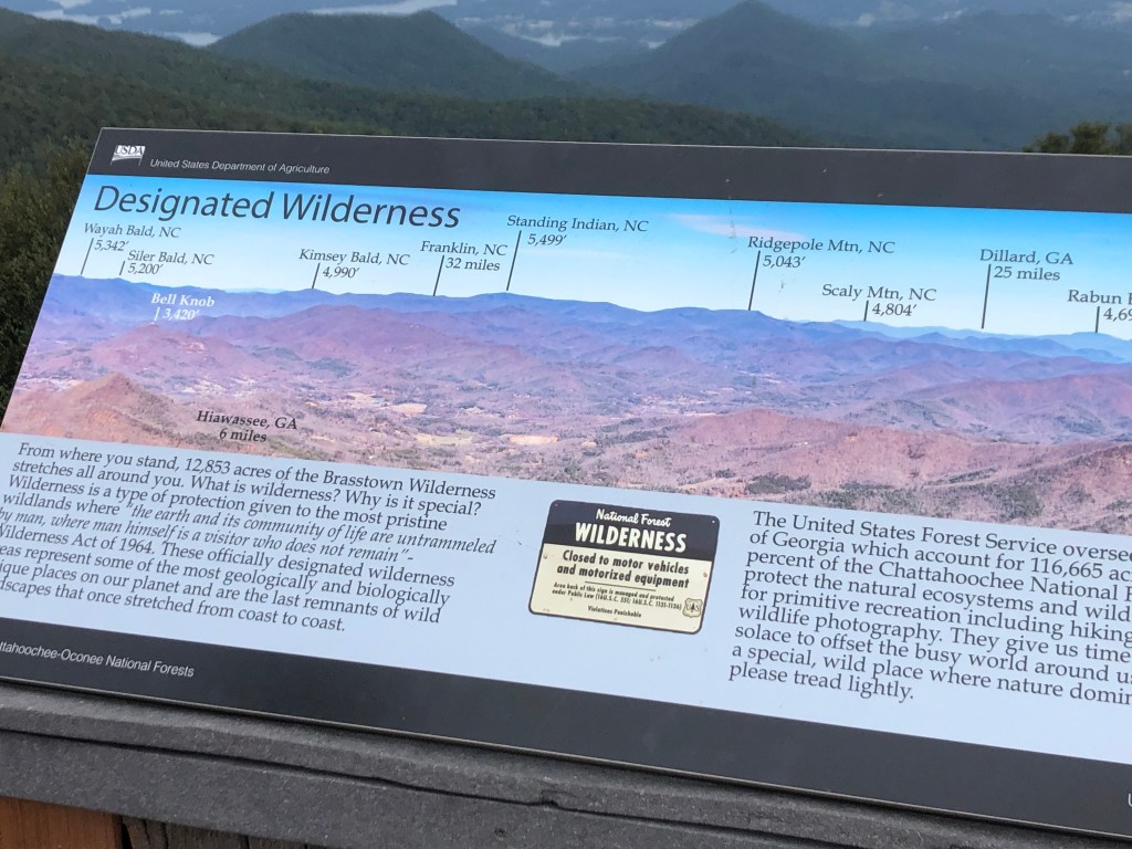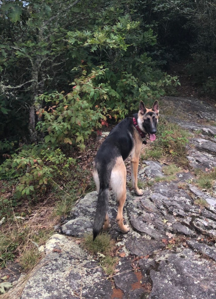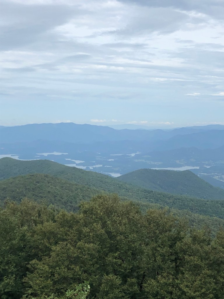 Brasstown Bald is the highest elevation (4,784 ft) in Georgia. There is a $5 fee per person to enter the park but considering all the resources available it is more than worth it. There is a visitor center, gift shop, picnic area, ample parking, concessions and bathrooms. Of course Haven came with us and was ready for another hike. First we walked up to the observation tower to take in the 360 degree views which were breathtaking! The viewing area is well built, spacious with lots of signage about what you see in each direction. From Brasstown Bald you can access four different trails: Brasstown Bald, Arkaquah, Jack’s Knob (which connects to the Appalachian Trail) and Wagon Train Foot Trail. We chose the Arkaquah to hike and and were treated to a great trail, stunning views and beautiful scenery.