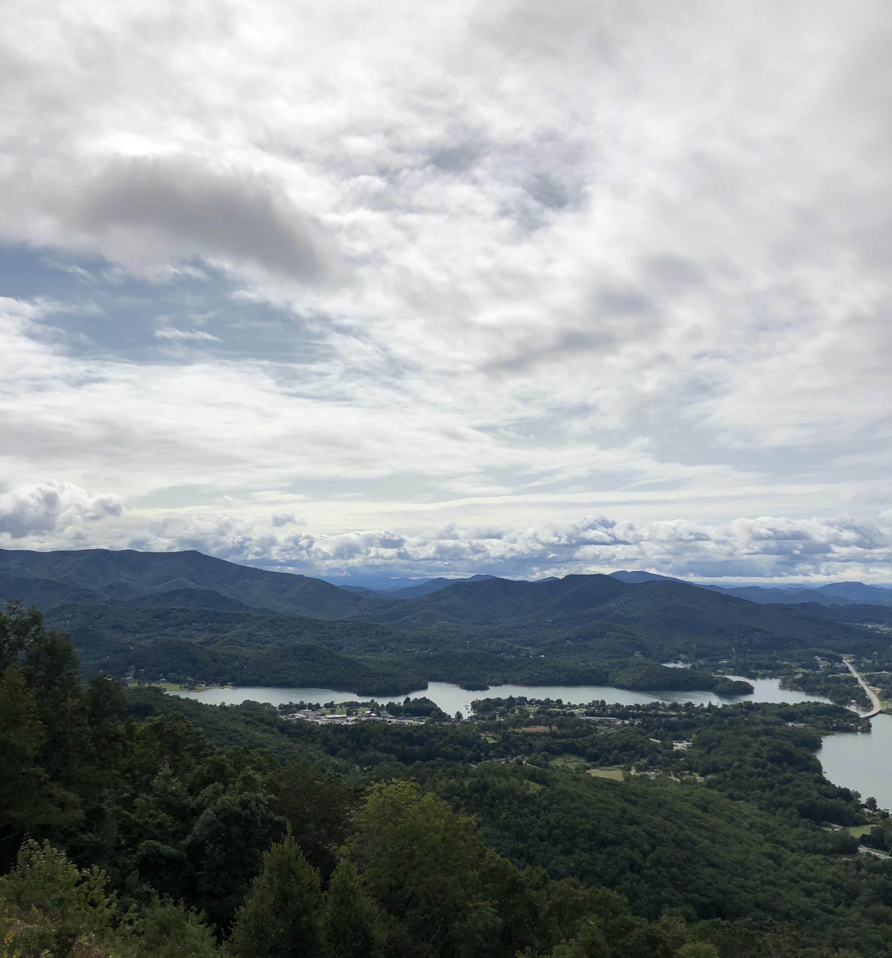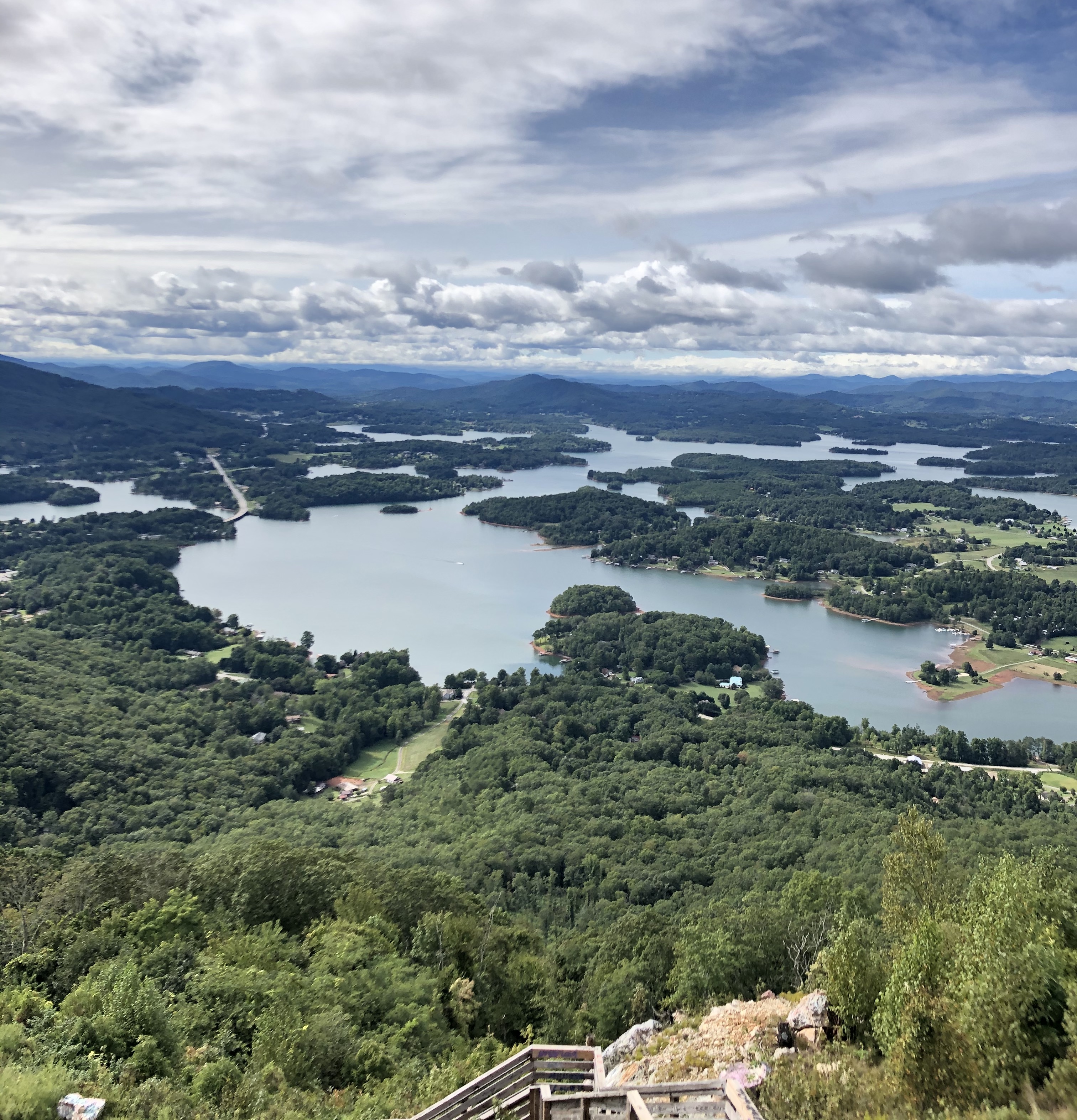 Bell Mountain in Hiawassee, GA provides a sweeping panorama. If you choose to go, be aware the access road is short but very steep, windy and basically one lane. After you park there is a paved steep 100 yard road to take you the rest of the way to the top. The reward when you get to the observation deck is a breathtaking 360 degree view. You can look over Chatuge Lake or the mountains of Towns County. Bell Mountain is owned by Towns County and is a Park and Historical Site open during the day for visitors to enjoy. Anytime is good to visit but sunrises and sunsets are especially beautiful viewed from Bell Mountain. There is no entry fee and no facilities, just scenery! Another great place to visit with your dog!