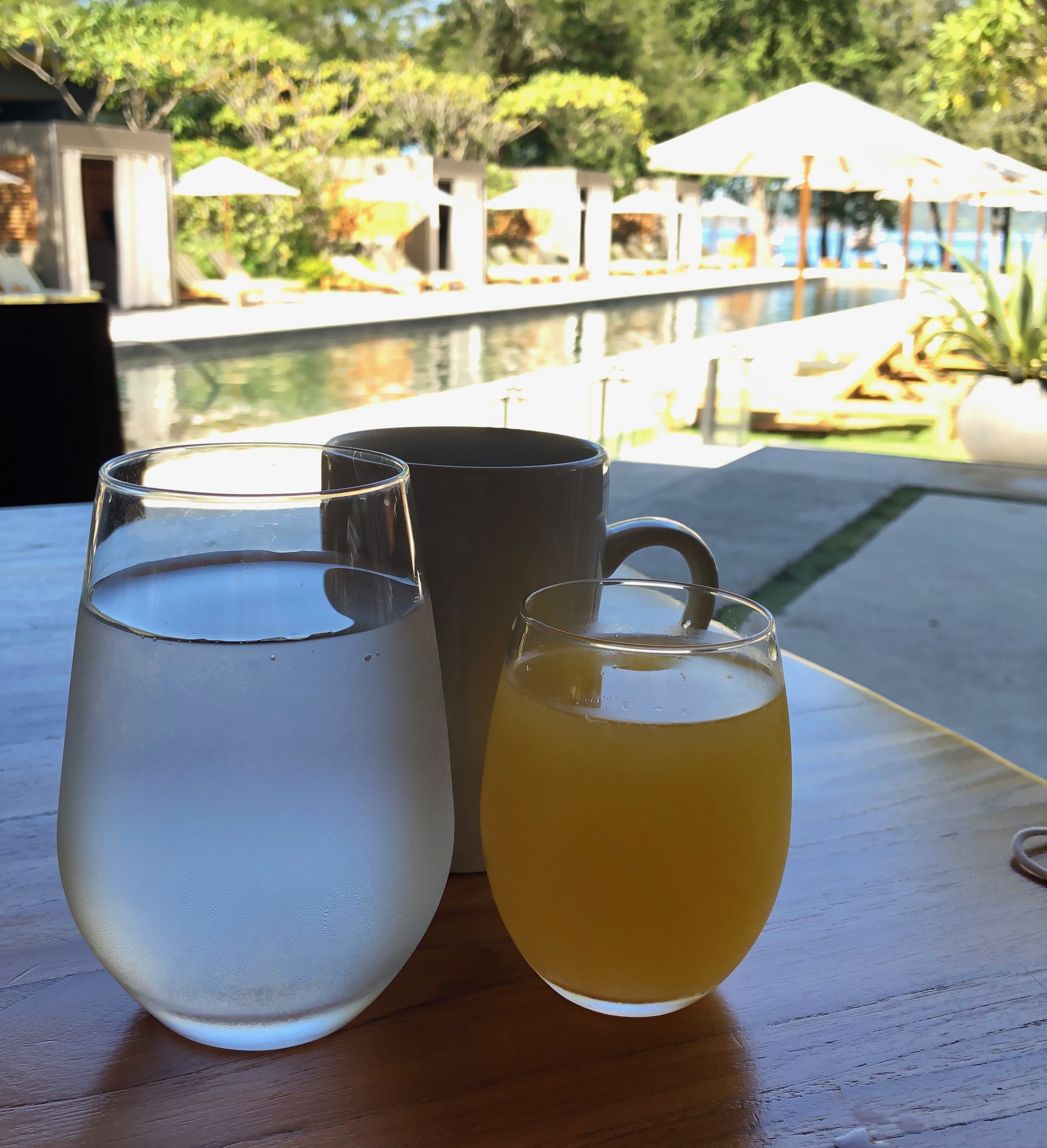 Starting at 6:00 am you can get your coffee, drinks or breakfast. Since we were coming from the East coast I was up early and got my cappuccino poolside delivered by one of the waiters. Anytime someone was sitting in a pool or beach chair the staff would ensure the guest had anything they could want-food or drink! I traveled with my daughter, who is not an early riser, so we would eat breakfast at Makoko around 9:00. Our reservation included breakfast so we ordered off the specific menu however there were many other options available on the full breakfast menu. Every morning there was the choice of orange juice and other fresh options such as blackberry, passion fruit, or watermelon. Fresh fruit, yogurt, bacon and eggs, pinto Gallo, bread options including croissants, danish and toast made for a hearty breakfast to get us powered up for the day. Oh, and as much coffee as we wanted.