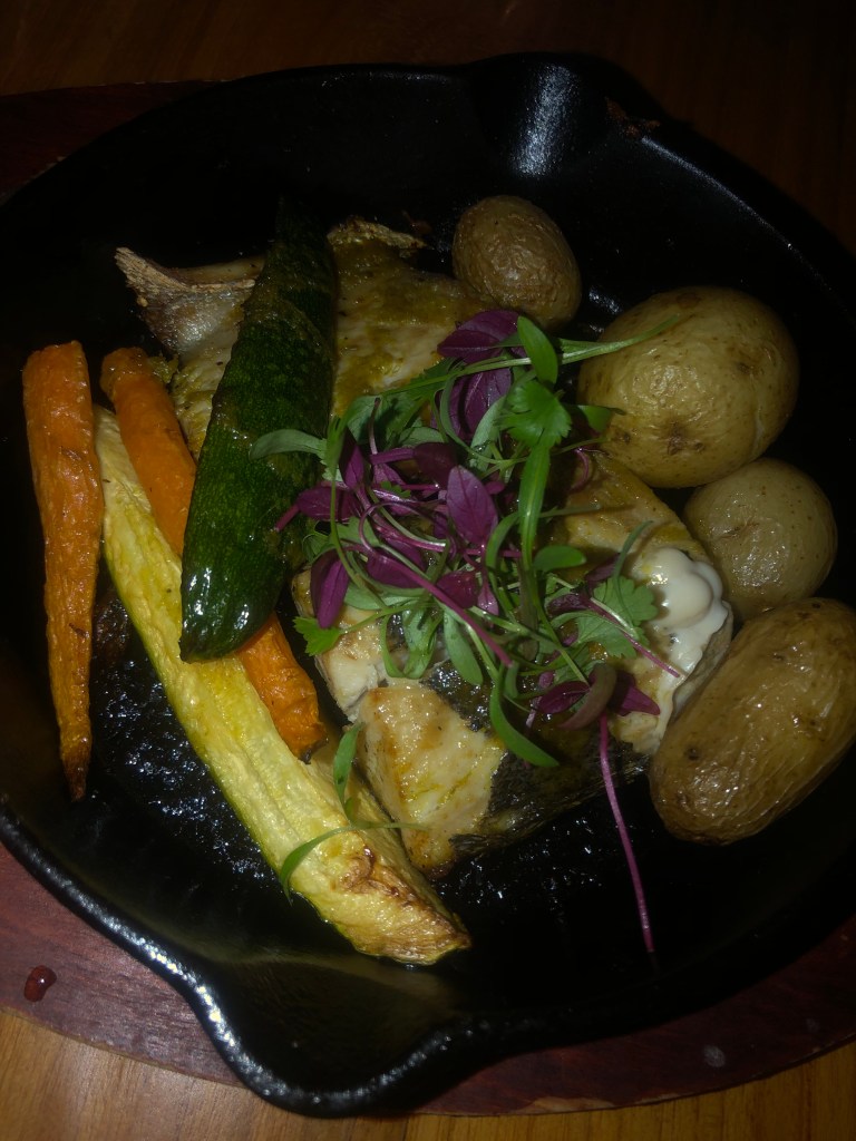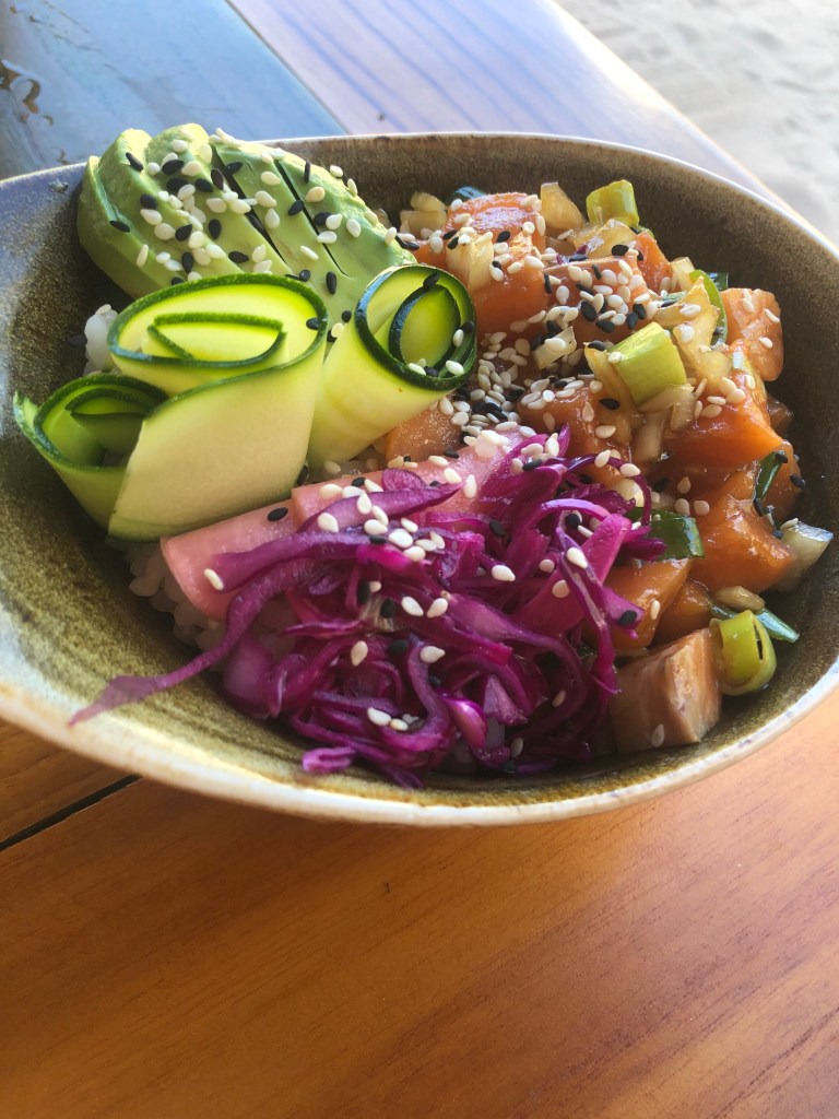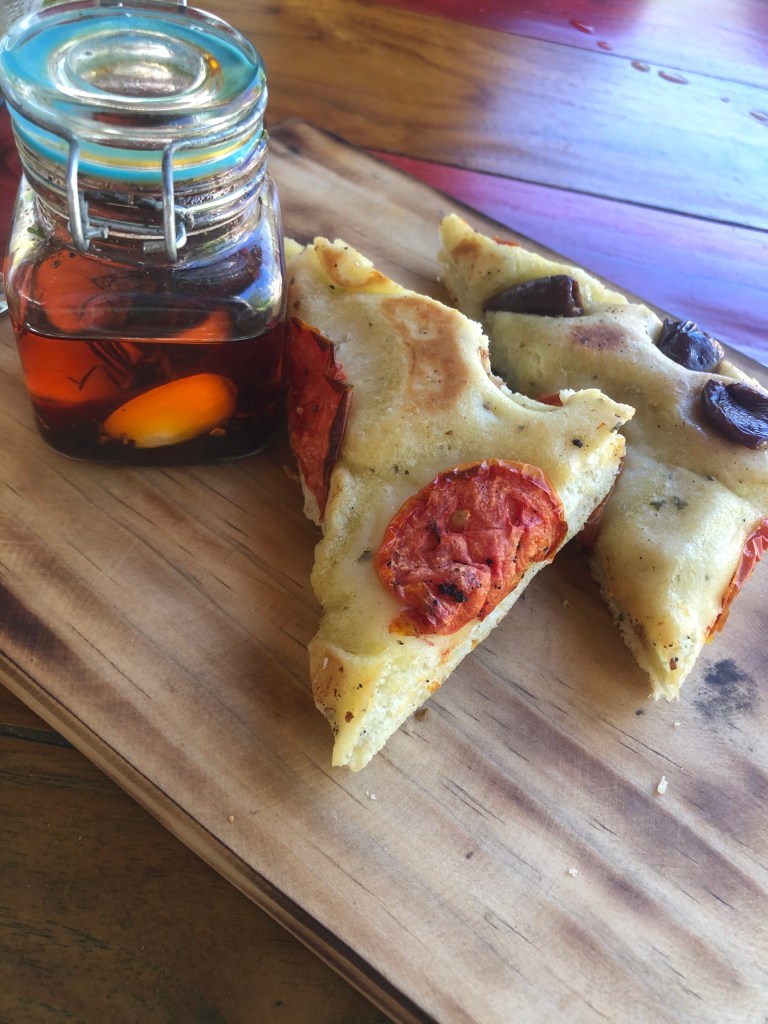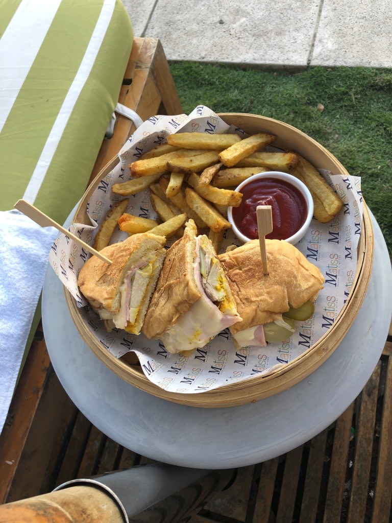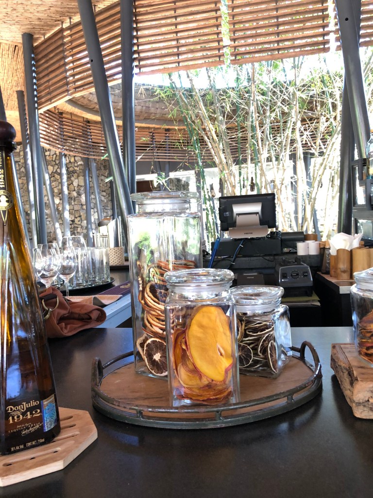 We enjoyed lunch either poolside or at a table at Matisse. The servers are wonderfully accommodating and are happy to serve you no matter where you are sitting! On our first day we sat poolside and ordered patacones and a Cubano for a late afternoon lunch-a lot of food and all delicious. On day two I ordered the Pura Vida pizza; I would not have come up with that combination but it was a definite win-grilled heart of palm, grilled corn, avocado, cilantro, pineapple and shrimp. Our lunch on day three eaten at a table at Matisse was a salmon poke bowl with a side of patacones. The poke bowl was fresh and incredible-all the ingredients were so flavorful and delicious. We were served a starter of focaccia bread with infused olive oil with a peppery kick leaving me inspired to create similar food. By the time we left Costa Rica patacones became my new favorite side dish and I can’t wait to make them at home!!