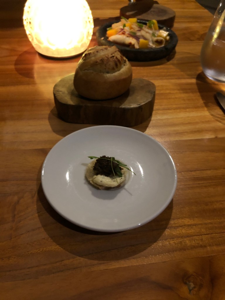 Dinner at Makoko was always wonderful-the atmosphere of eating outside, the lighting around the resort, the warm service and fresh delicious cuisine. Our first dinner we both had fish entrees-Mahi-Mahi and Grouper. The rolls they serve before dinner are full of flavor as they are baked with fresh herbs. Our second night we ordered the pipa ceviche, crispy rice noodle soup, risotto and finished with Parrot & Tree Chocolate-all absolutely amazing!!!