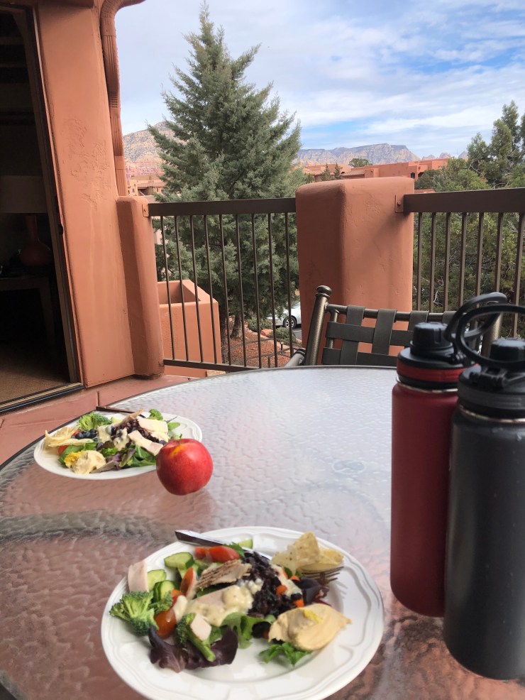 We opted to stay at the Sedona Summit Resort on the west side of town for a variety of reasons. We wanted to be in a quiet out of the way place and with its location in West Sedona, this requirement was fulfilled. Another feature we wanted was a place with a full kitchen so we could prepare some of our own meals-the kitchen in our unit was fully equipped with everything we needed (coffee pot, coffee and filters) and then some we wanted (toaster)! Add in the other spaces in the suite-balcony, sitting room with electric fireplace spacious bedroom, huge bathroom with soaking tub and sizable shower it was the perfect place for us to spend our vacation. The suite was completely outfitted with kitchen linens, bath linens and pool towels as well as paper towels, extra trash bags, dish and dishwasher soap, and laundry soap. We just had to make a stop (or two) at Whole Foods to get our groceries!